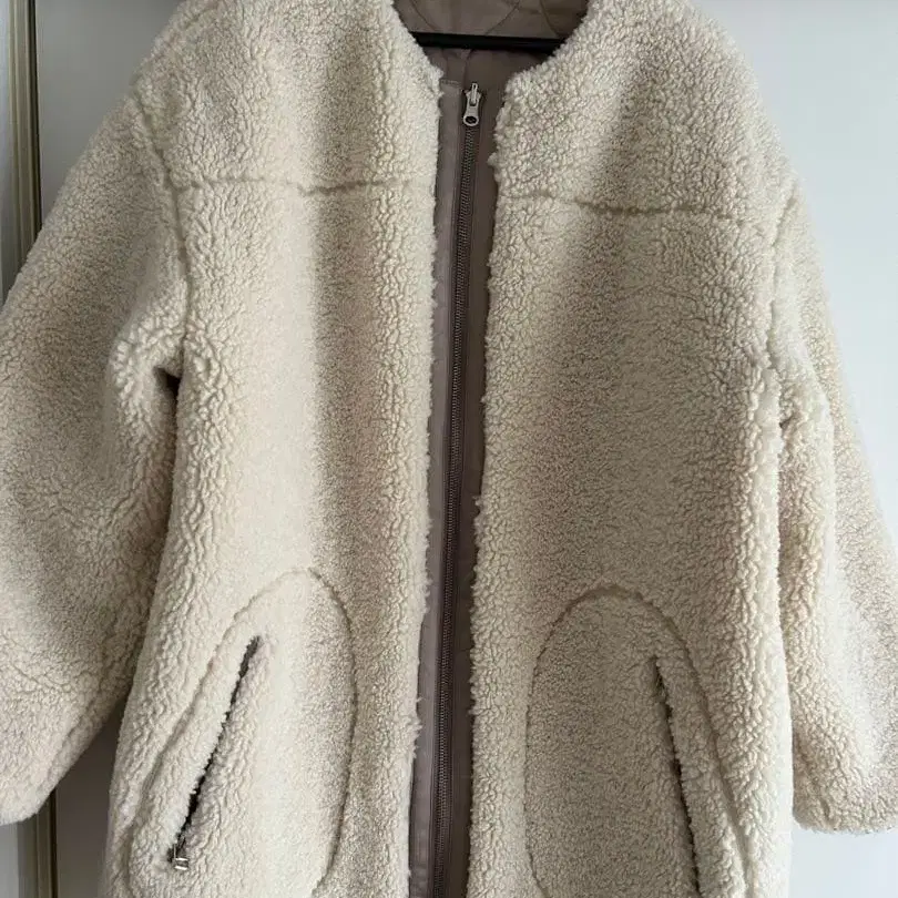 크림색 플리스 자켓