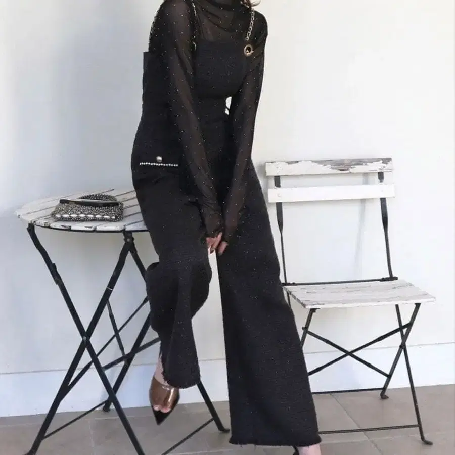 로얄 파티 체인 스트랩 트위드 올인원