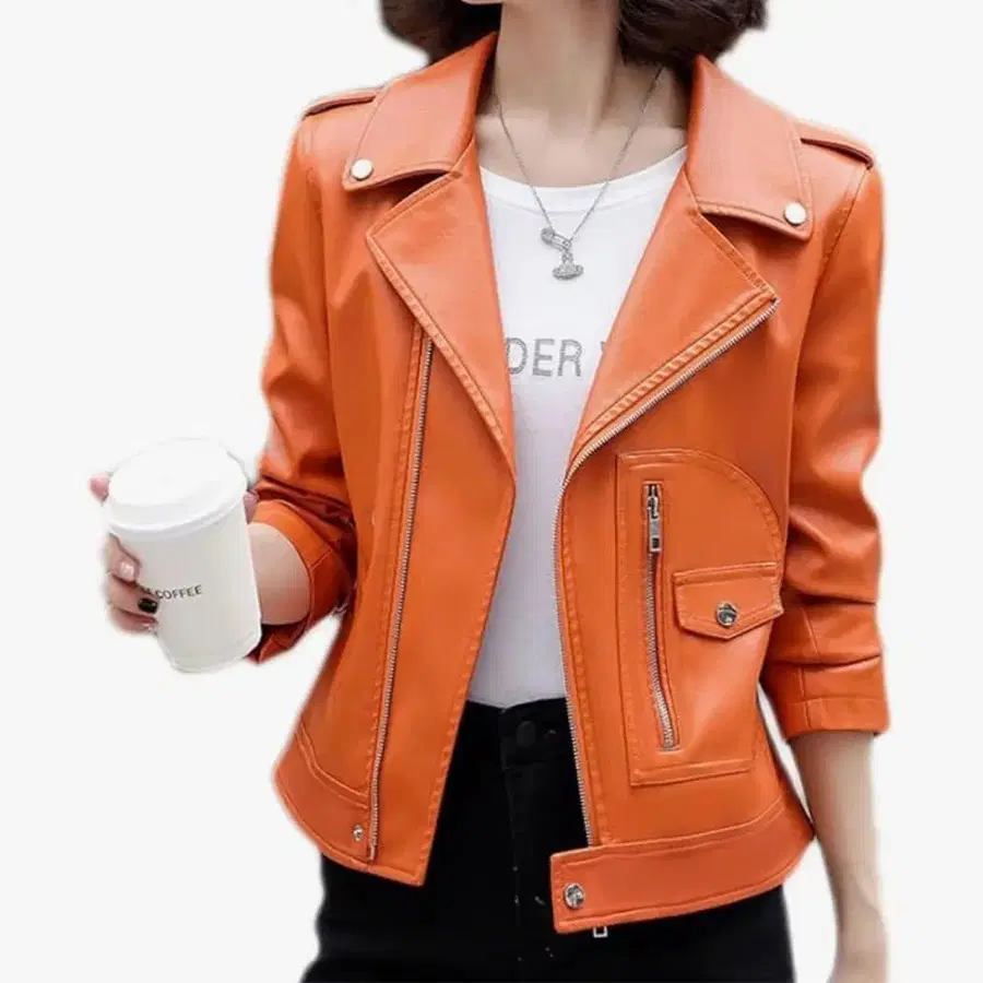 오렌지 가죽 자켓