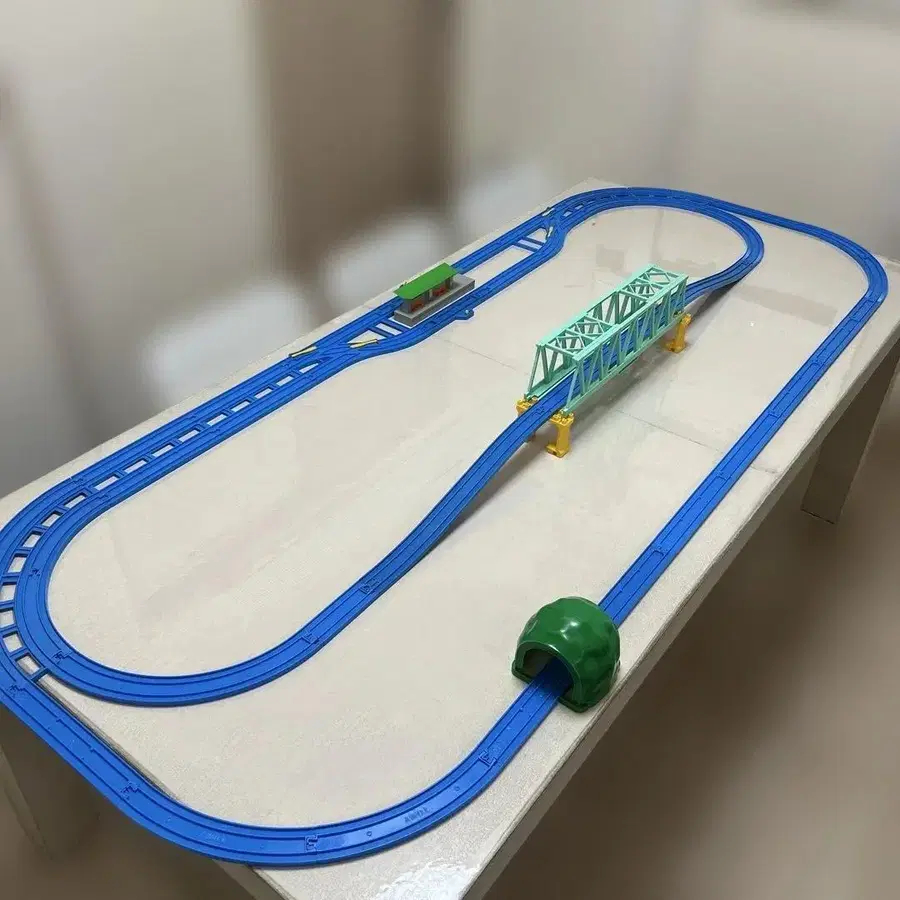 프라레일 레이아웃 세트 파란색 레일과 그린 컬러의 다리