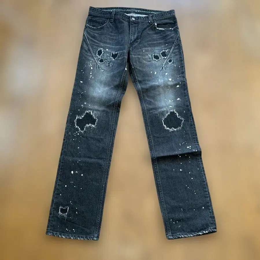 넘버나인 [ 복각판 ] 데미지 가공 스트레이트 데님 다크 그레이