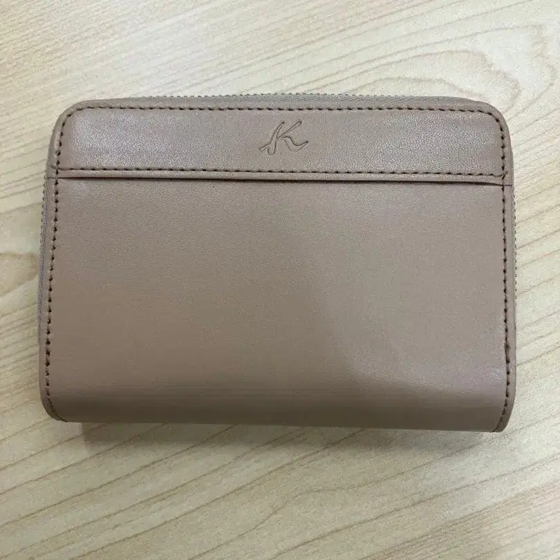 베이지 접이식 지갑 소가죽 (미사용 새상품)