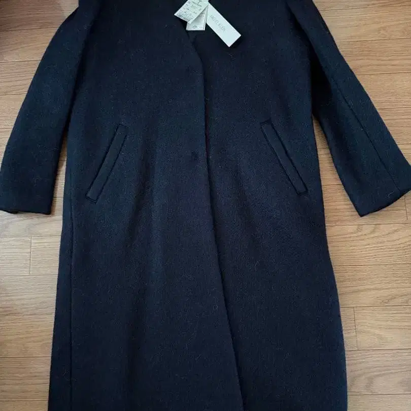 미셸 크라운 미사용 새상품 노카라 네이비 롱 코트 M 사이즈