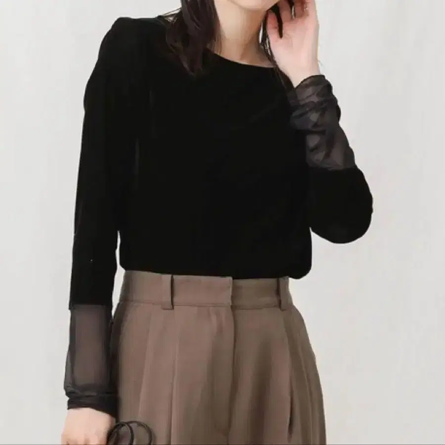 [ 새상품 ] Gready Brilliant 벨로아 소매 튤 보트넥 상의