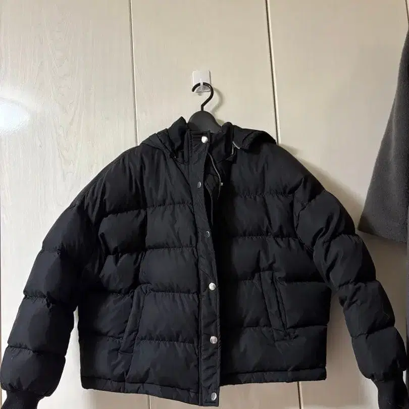 jouetie 블랙 다운 자켓 숏 기장 프리 사이즈 후드 탈부착 가능