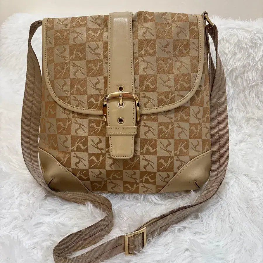 kitamura2 키타무라 K 올 로고 무늬 숄더백 베이지 가죽
