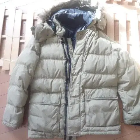 유니클로 M 사이즈 후드 부착 베이지 다운 파카 자켓