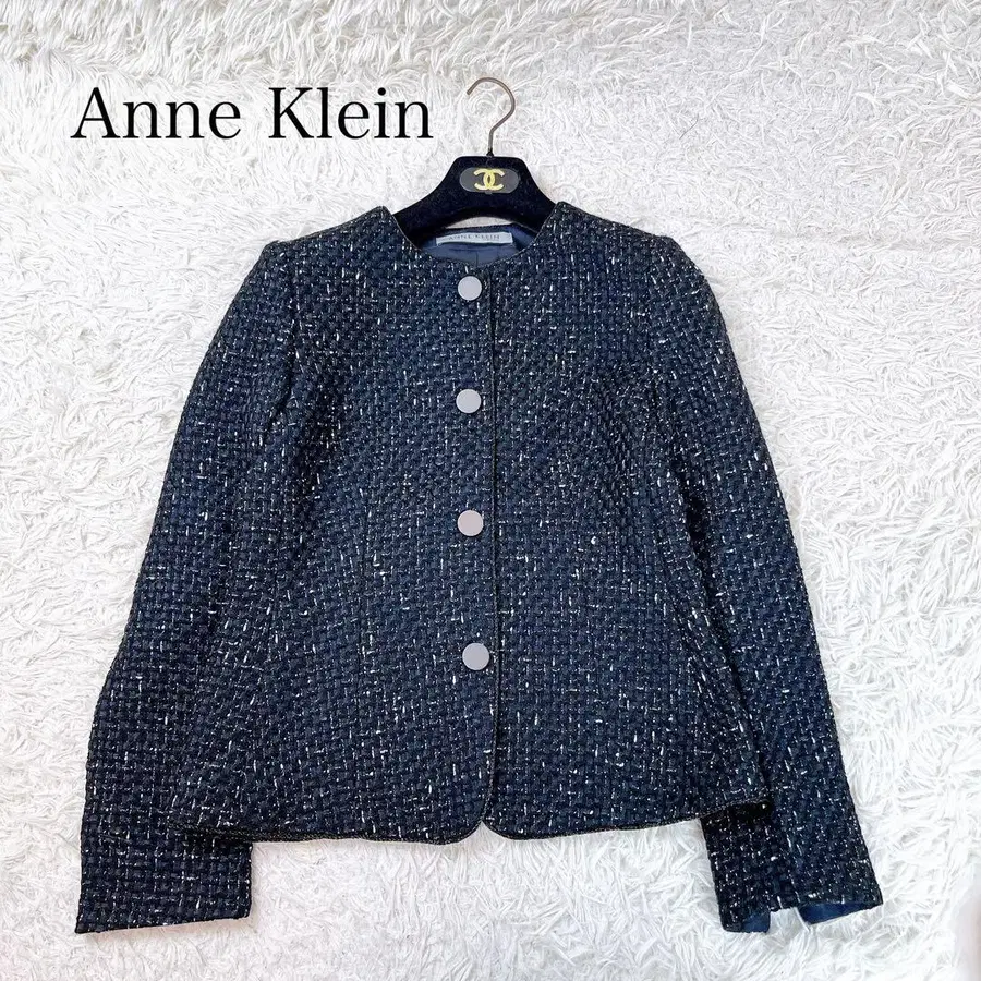 컨디션 최상 언클라인 트위드 노카라 자켓 네이비 포멀 L