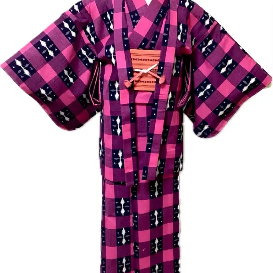 상품명 기모노 세트 (기모노, 겉옷, 반폭 오비, 겉옷 끈) 소재 기모노: 울 반폭 오비: 순수 실크 사이즈 기모노 기장(어깨 기준): 약 160cm 화장: 약 64cm 소매 길이: 약 44cm 앞 폭: 약 23.5cm 뒷 폭: 약 28.5cm 겉옷 겉옷 기장(어깨 기준): 약 78cm 반폭 오비: 길이 약 65cm 폭 약 45cm 반폭 오비 길이 약 340cm 폭 약 15cm 색상 기모노: 적자색/핑크/네이비/화이트 계열 오비: 옅은 오렌지 계열 재단이 끝난 단의 울 앙상블에 반폭 오비, 겉옷 끈 세트 상품입니다. 기모노는 시츠케가 붙어 있는 미사용 상품으로 보입니다. 반폭 오비는 하카타 오리 키치야 오비입니다. 평상복, 코몬 무늬 상품입니다. 사이즈가 작지만, 키가 작은 분은 물론, 의류나 장갑 등을 맞춰 코디하여 착용하는 것도 요즘 인기가 많습니다. 평상복, 설날, 첫 참배 등에 추천합니다. 기장(어깨에서): 160~164cm
