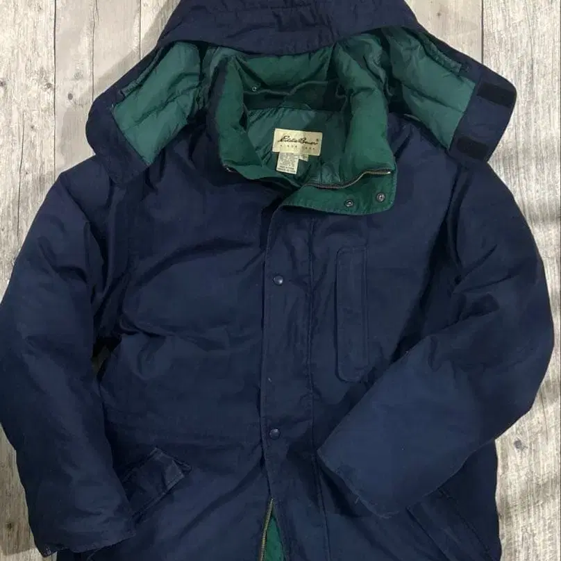 에디 바우어 다운 자켓 후드 부착 네이비 그린 L