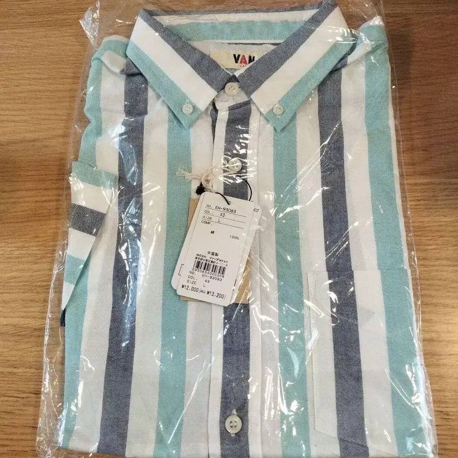 VAN JAC 반팔 셔츠 파랑과 화이트 스트라이프