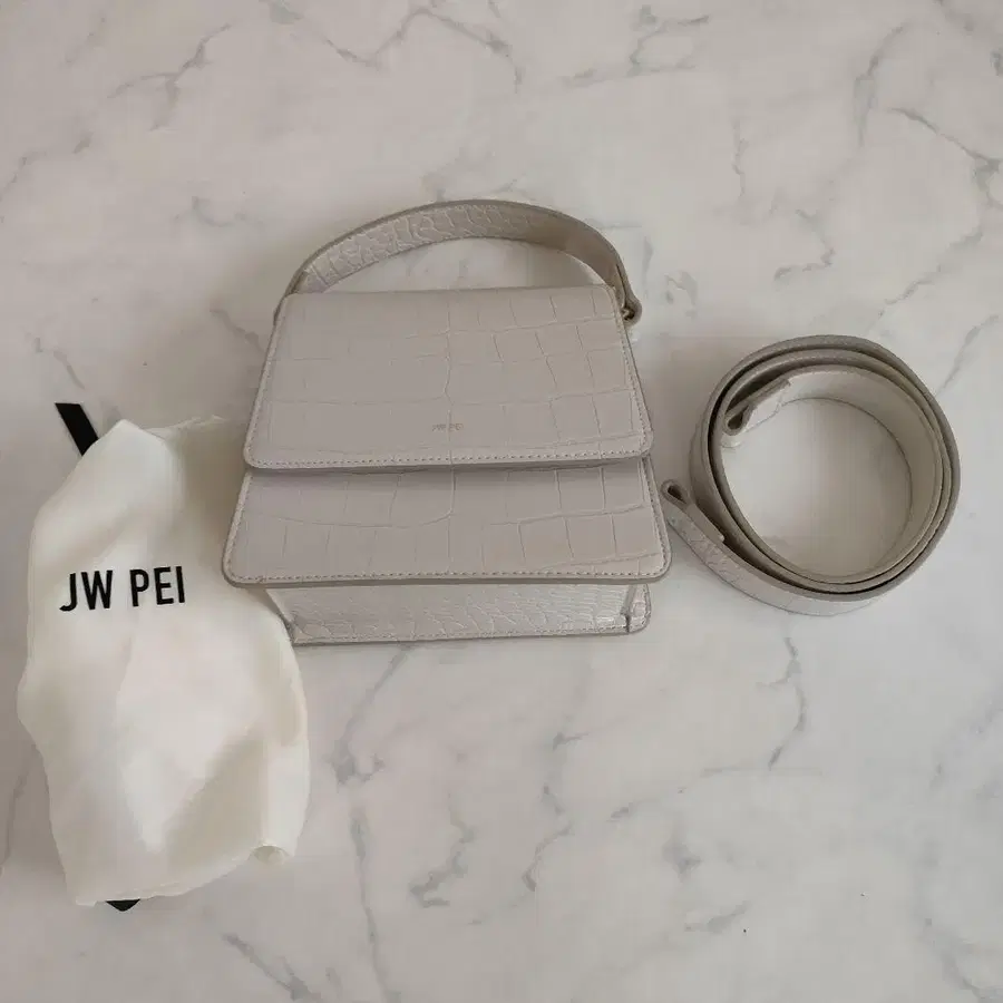 JW PEI 라이트 그레이 크로커다일풍 미니 핸드백