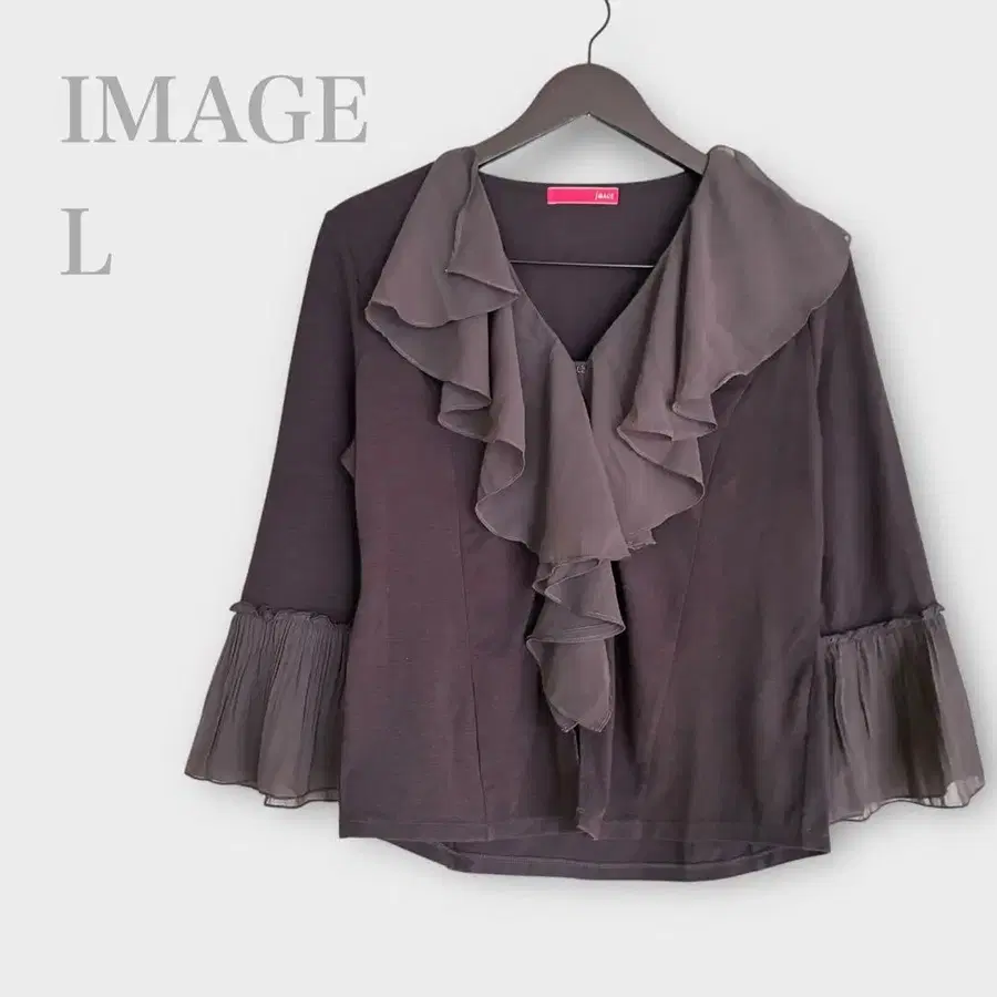 이마쥬 프릴 블라우스 가디건 플리츠 소매 브라운 L 페미닌