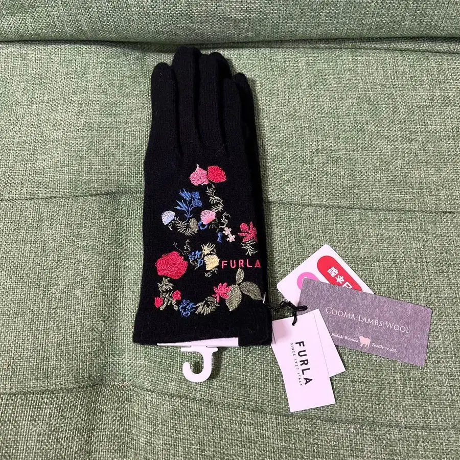 FURLA 꽃무늬 자수 장갑 블랙 스마트폰 터치 가능