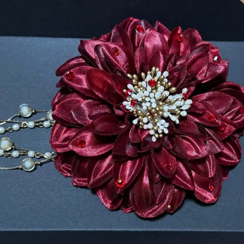 와인 레드 새틴 코사지 결혼식 사은회 성인식