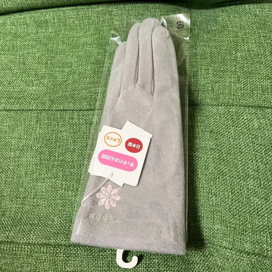 FURLA 그레이 장갑 L 사이즈 스마트폰 터치 가능 꽃무늬 자수