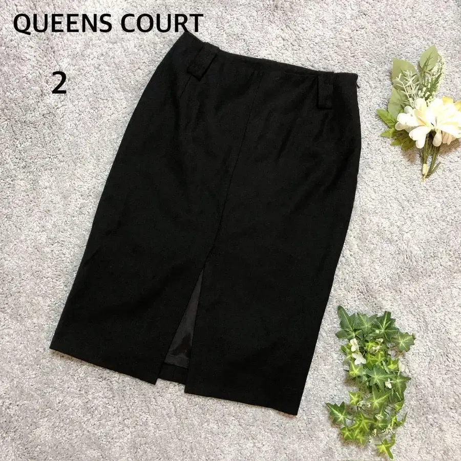 퀸즈 코트 타이트 스커트 무릎 기장 울 혼방 슬릿 무지 세레모니 블랙