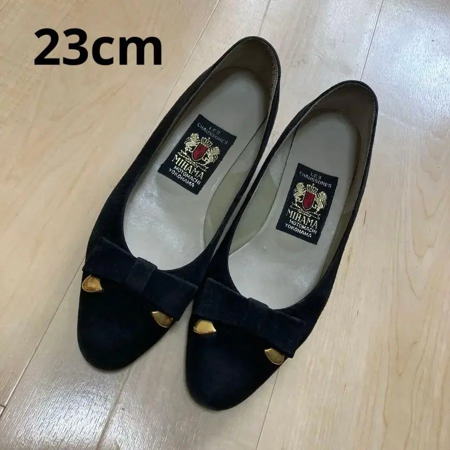 MIHAMA 미하마 펌프스 리본 요코하마 스웨이드 골드 블랙 23cm