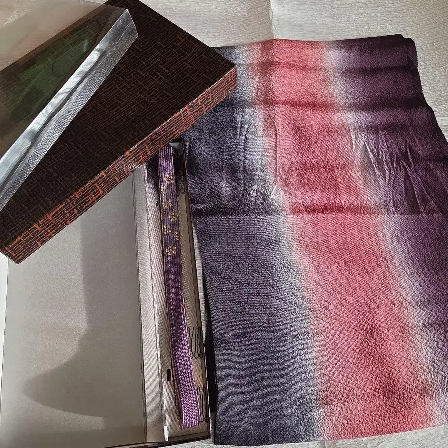 순수 실크 그라데이션 허리띠 오비 장식 천 세트 (적자색)