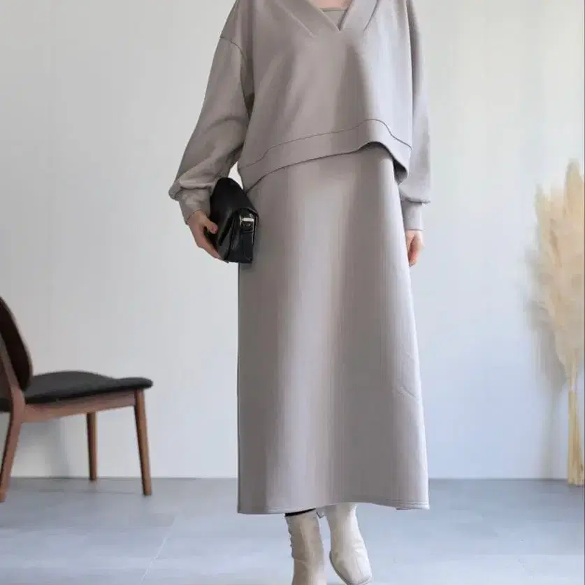깊은 V넥이라 하이넥과 함께 매치하여 목 라인을 살려 착용하는 것을 추천합니다.