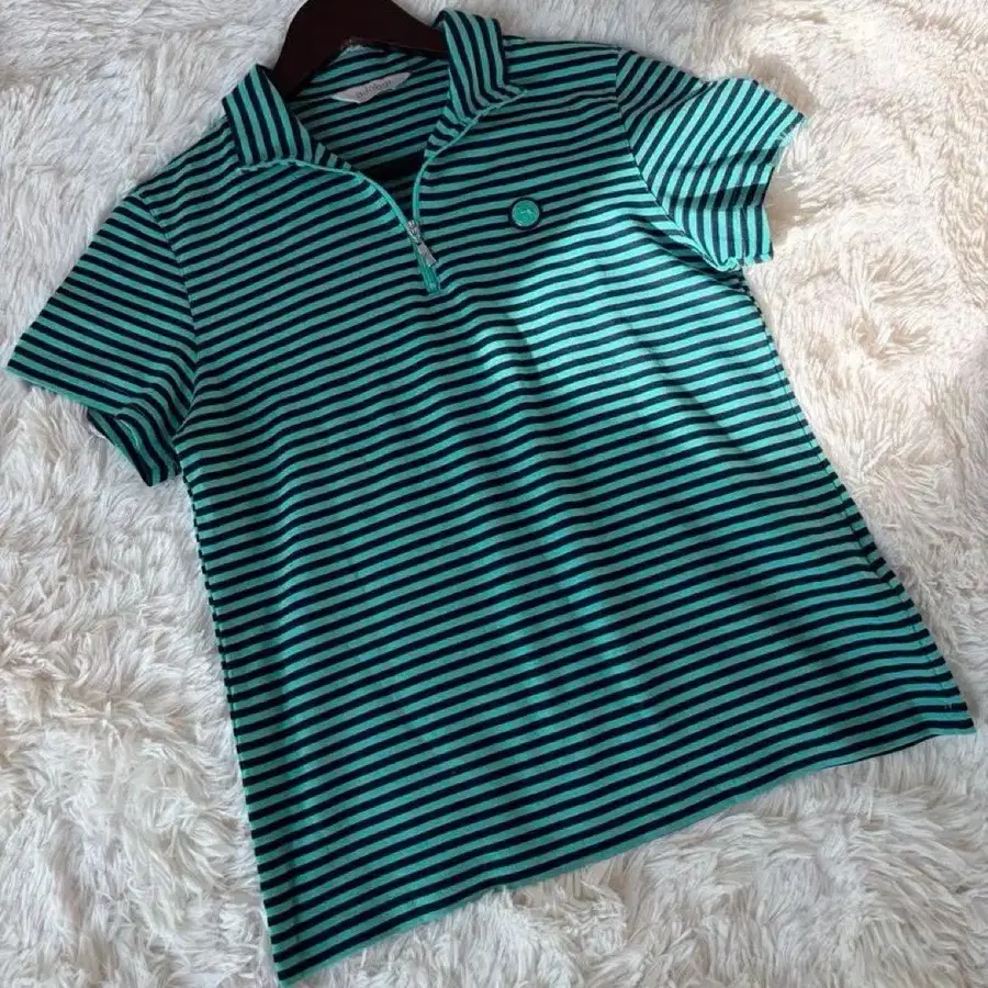 adabat 여성용 반팔 피케 셔츠 그린 보더