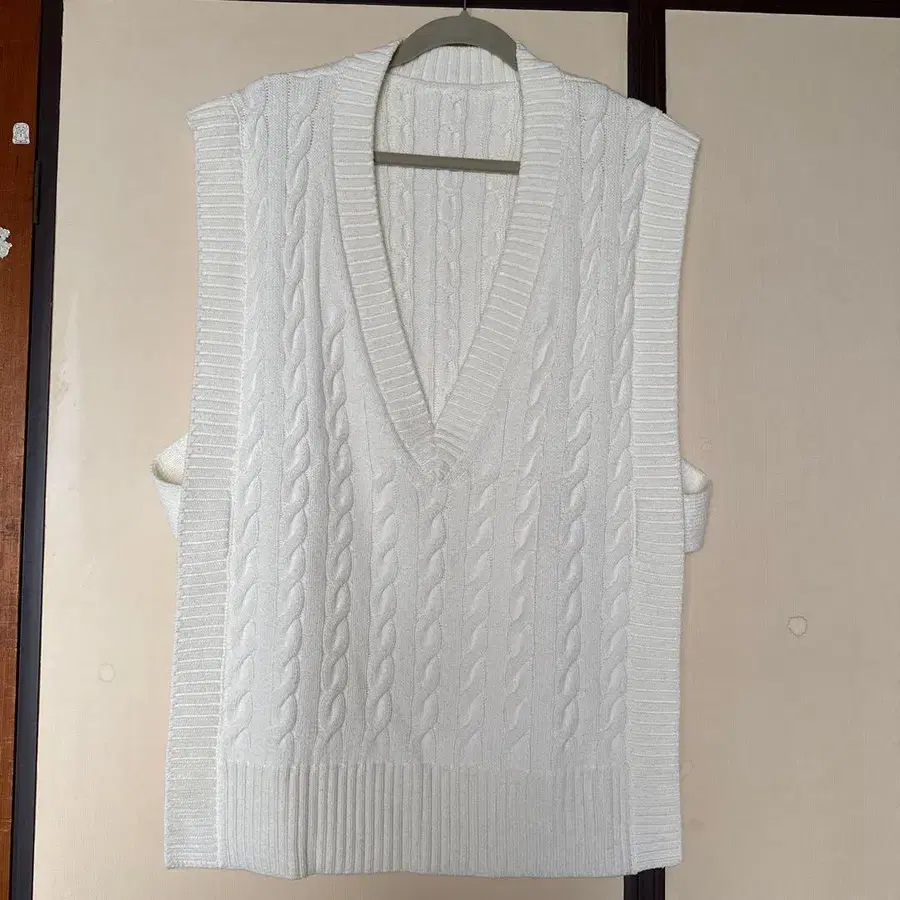 GALLARD GALANTE 화이트 케이블 니트 V넥 베스트