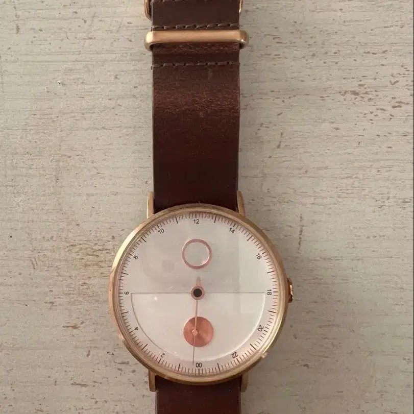 브라운 가죽 아날로그 손목시계