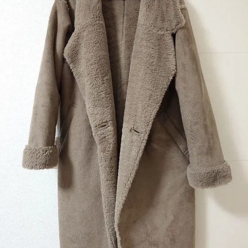 mystic / 롱 페이크 무스탕 코트 여성용 브라운