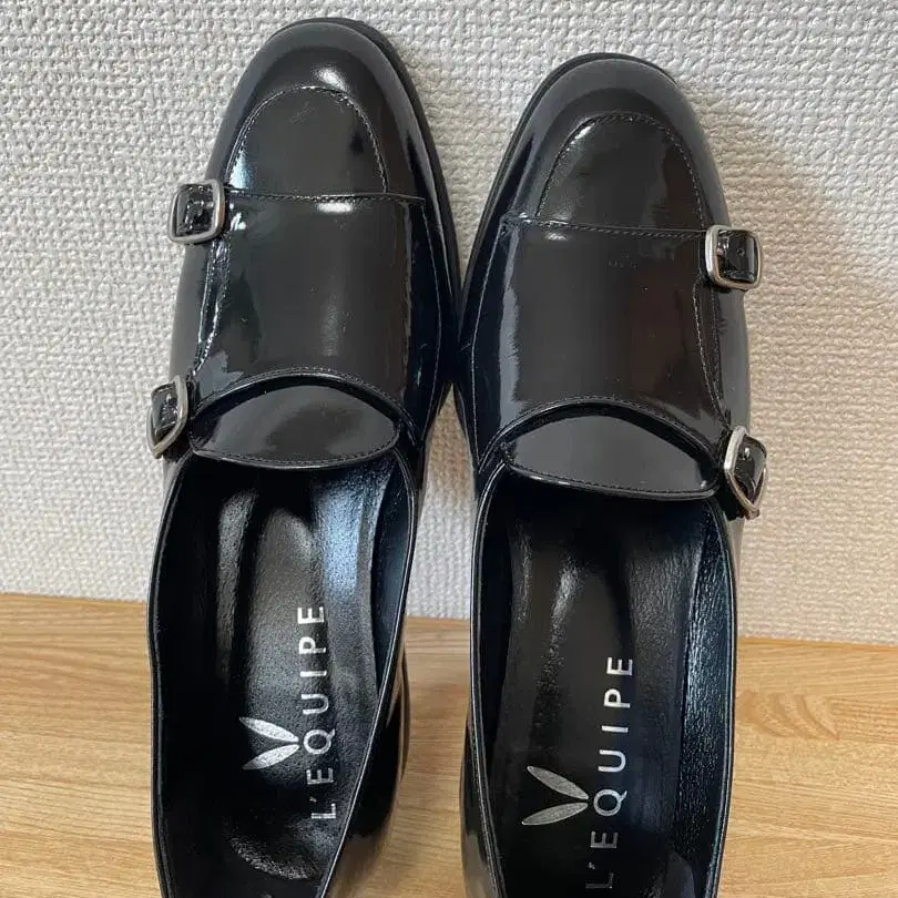L'EQUIPE 블랙 에나멜 더블 몽크 로퍼
