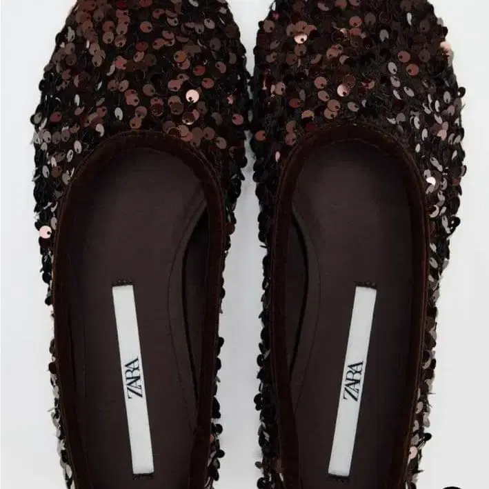 새상품 ZARA 스팽글 플랫슈즈 브라운