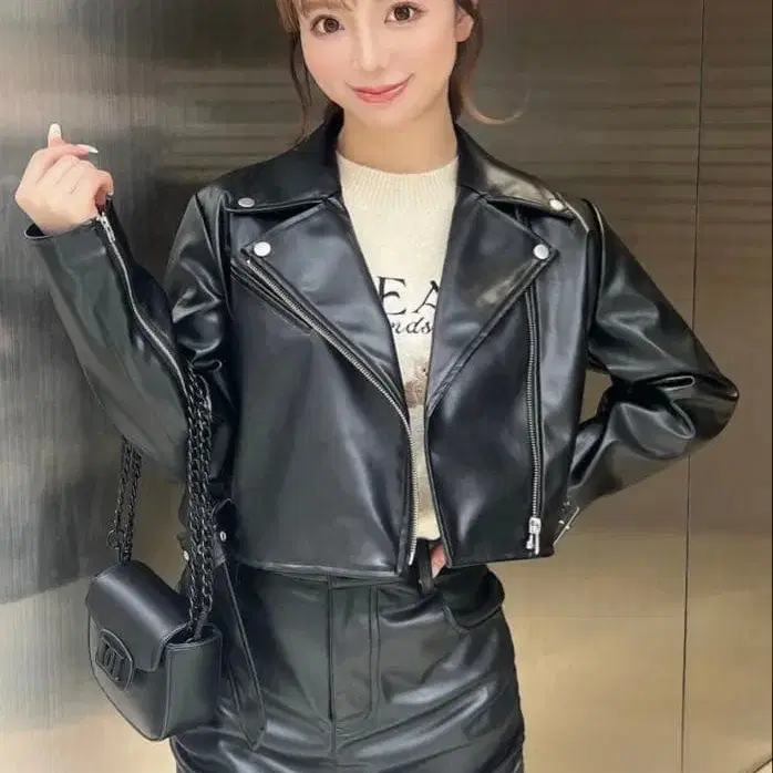 다리치 라이더 자켓 개더 가죽 스커트 2세트