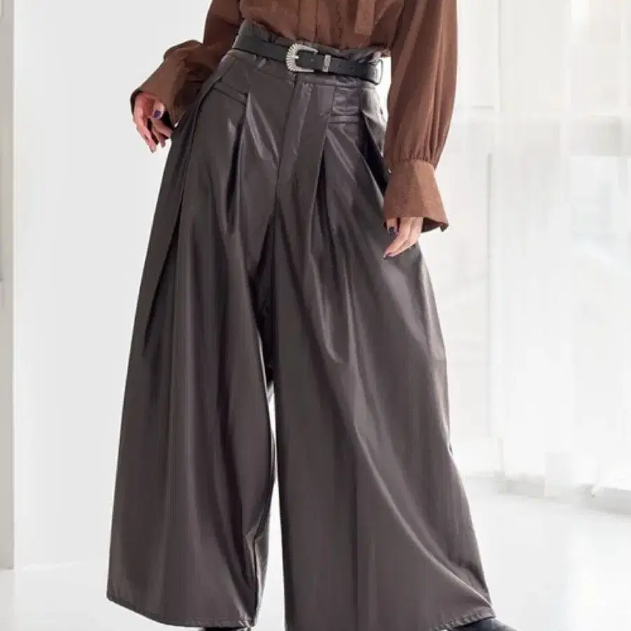 HARE 인조 가죽 와이드 턱 스트레이트 팬츠