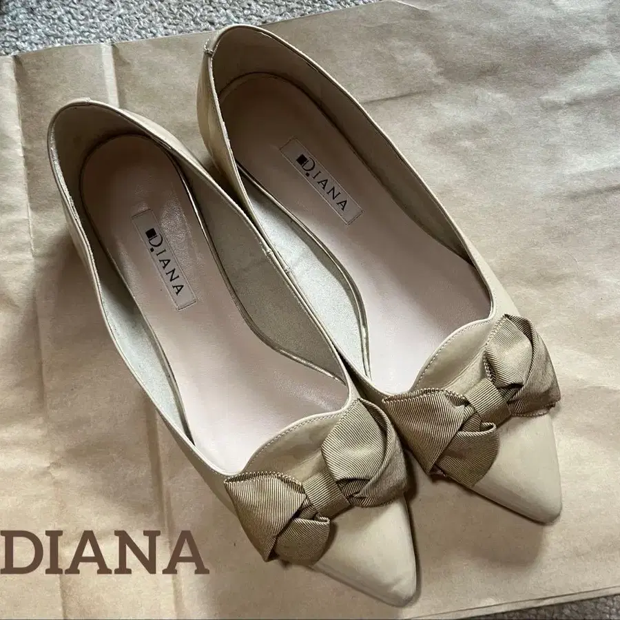 DIANA 다이애나 에나멜 펌프스 플랫슈즈 베이지 리본