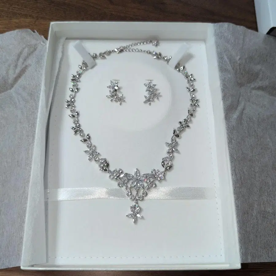 러브 티아라 실버색 목걸이와 귀찌 세트