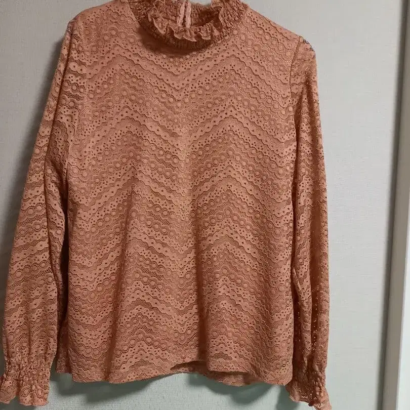 레이스 프릴 옷깃 긴팔 상의 핑크