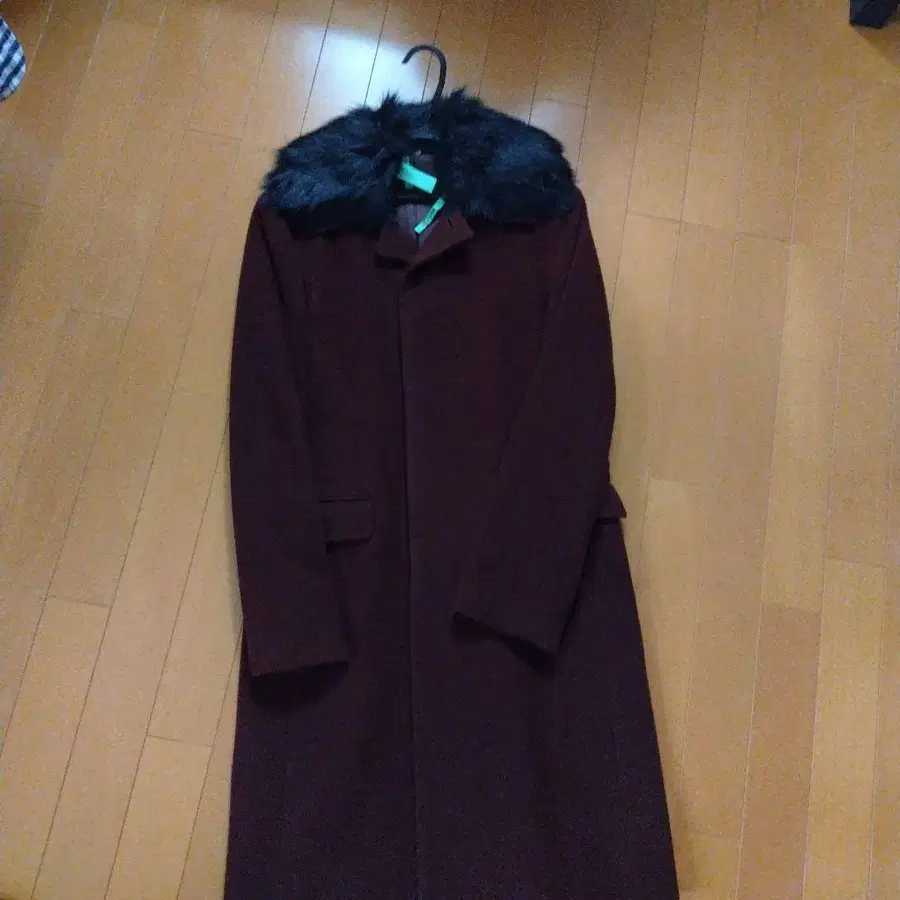 퍼 달린 와인 레드 롱 코트 사이즈 2