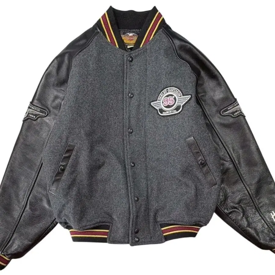 할리데이비슨 95주년 소매 가죽 바시티 자켓 그레이/블랙 가죽 L