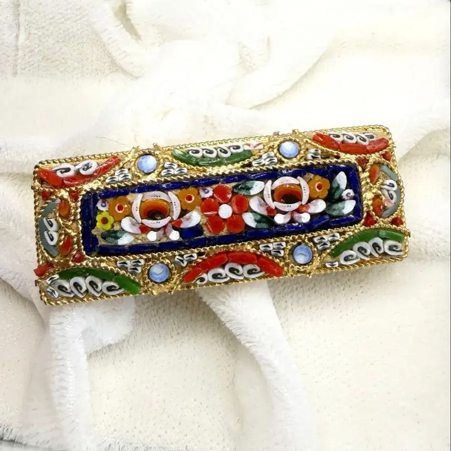 이탈리아제 마이크로 모자이크 스퀘어 브로치 골드 컬러 액세서리