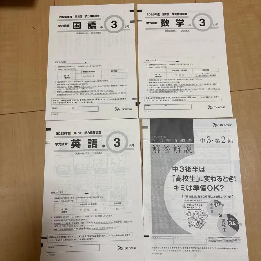 [ 미사용 새상품 ] 학력 추이 조사 2025년도 중3 제2회