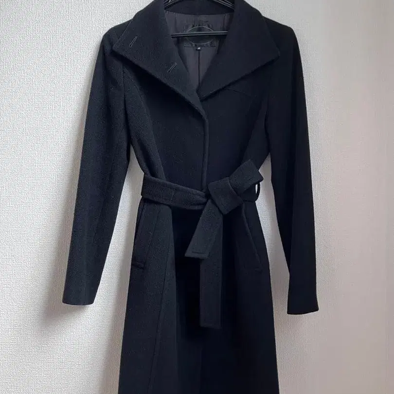 언타이틀 블랙 울 100% 롱 코트 벨트 포함