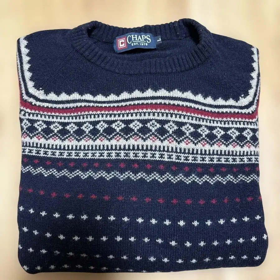 CHAPS 네이비 페어아일 패턴 니트 스웨터