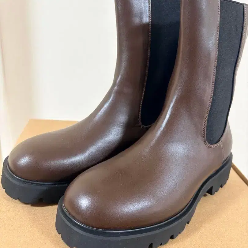 studio CLIP 사이드 고어 부츠 브라운 통굽 새상품급 미사용
