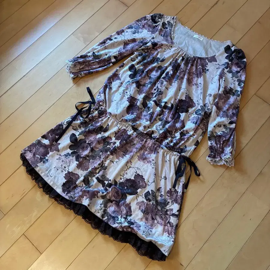 레스트로즈 스모키 플라워 원피스 벨로아 핑크