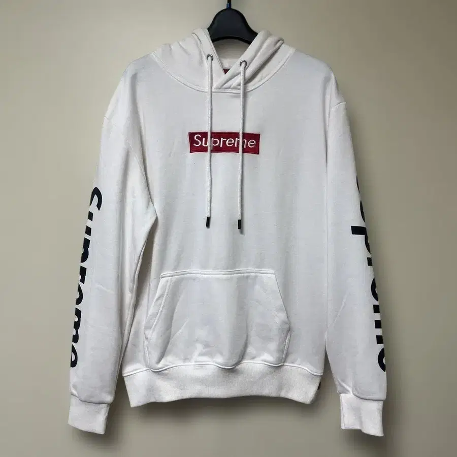 박스 로고 화이트 후드티