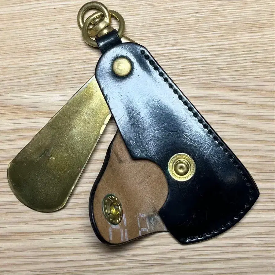 쉘 코도반 커버 포함 놋쇠 구두 주걱 / 블랙