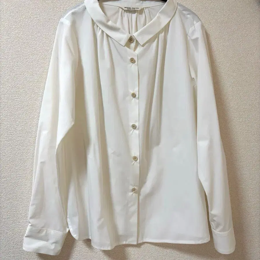 작고 앙증맞은 카라와 넓게 파인 넥라인이 특징이며, 앞뒤 넥에 섬세하게 들어간 개더가 사랑스러운 블라우스입니다.