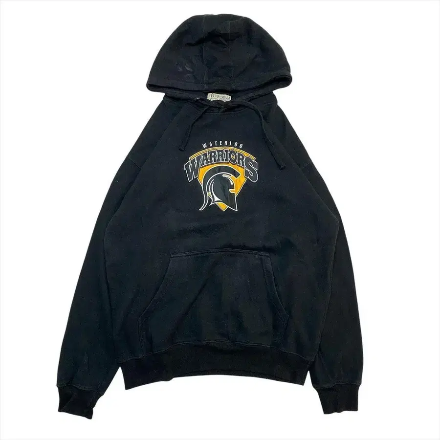 Vintage 00s- JPT PREMIUM 워털루 대학 워리어스 칼리지 로고 맨투맨 후드티 블랙 구제 의류 남성용 L 캐나다 풀오버 후디 빈티지 taus2265