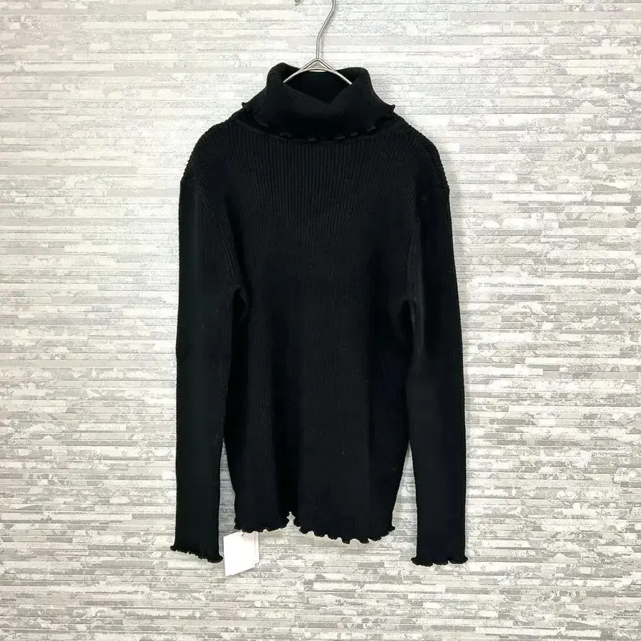 Louéme의 심플한 블랙 컬러 터틀넥 리브 니트.