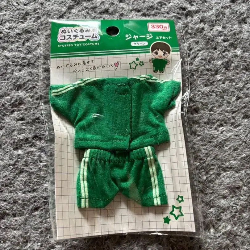 [미사용 새상품] 봉제 인형용 코스튬 저리 상하의 세트 그린 캔두