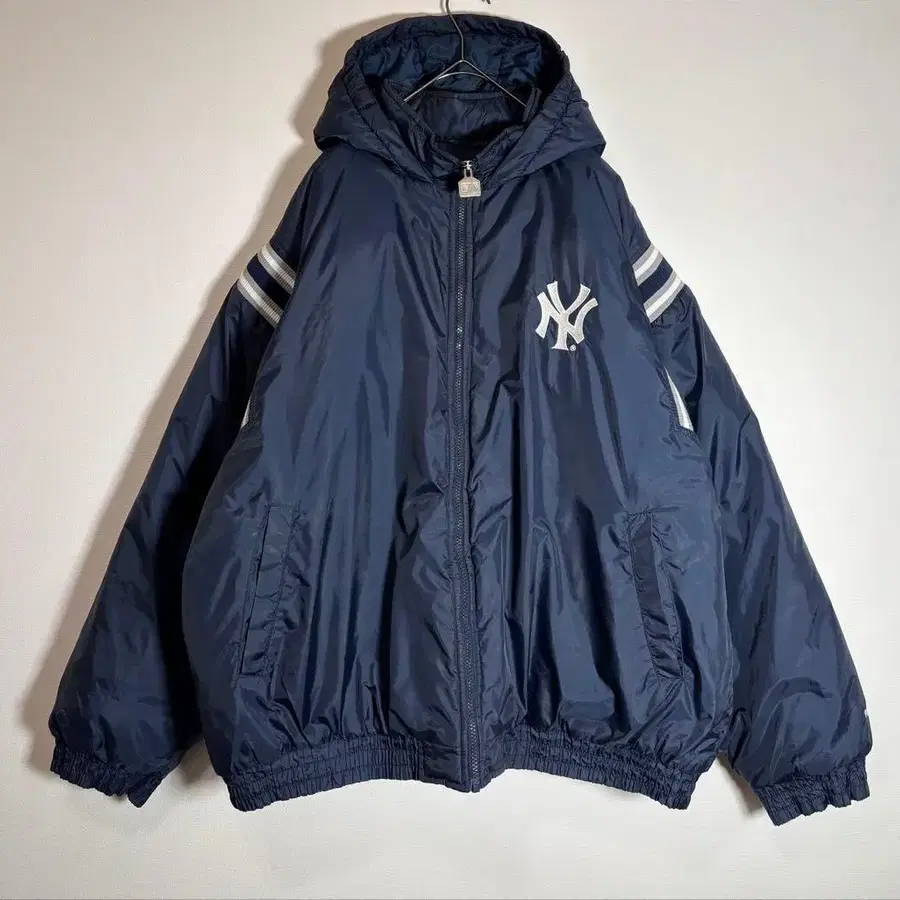 • Perushu MLB 콜라보 충전솜 퀼팅 덕 후드 블루종 양키스